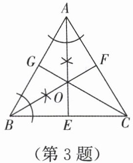 3. 如图,在△ABC中,点E,F,G分别在BC,AC,AB上,AE与BF交于点O,且点O在CG上,根据尺规作图的痕迹,下列说法不正确的是(