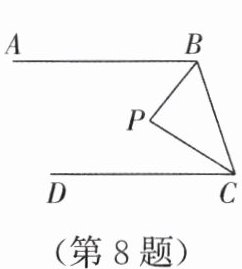8. 如图,已知AB//CD,且点P到AB,BC,CD的距离相等,则∠BPC的度数为