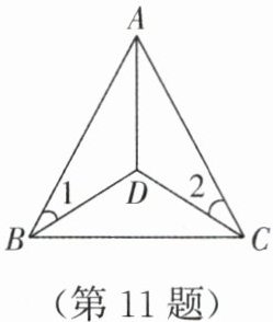 11. 如图,已知在△ABC中,BD= DC,∠1= ∠2。求证:AD平分∠BAC。
