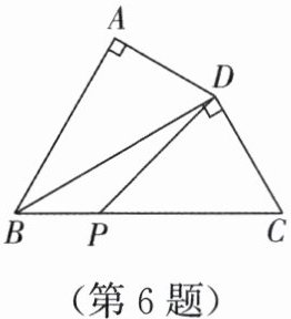 6. 如图,在四边形ABCD中,∠A= 90°,AD= 3,连接BD,BD⊥CD,垂足为D,∠ADB= ∠C,P是BC边上的一动点,则DP的最小值是