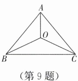 9. 如图,O是△ABC内的一点,且点O到三边AB,BC,CA的距离相等,连接OA,OB,OC。若AB:BC= 4:5,△AOB的面积为20,则△BOC的面积为