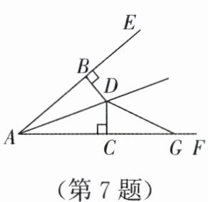 7. 如图,已知DB⊥AE于点B,DC⊥AF于点C,且DB= DC,∠BAC= 40°,∠ADG= 130°,则∠DGF的度数为