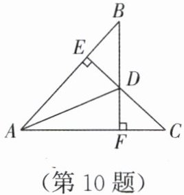 10. 如图,CE⊥AB,BF⊥AC,垂足分别为E,F,BF,CE相交于点D,BD= CD,有下列结论:①BE= DE;②△BDE≌△CDF;③AD平分∠BAC;④∠DAC= ∠BDE。其中正确结论的序号是