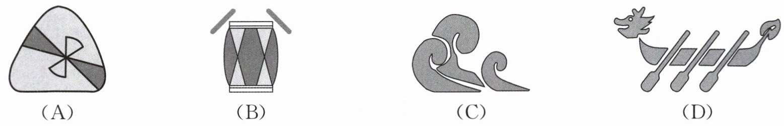 4. (2024,广西,2)端午节是我国传统节日,下列与端午节有关的文创图案中,成轴对称的是(
