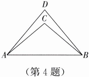4. 如图,线段 $AB$ 外有 $C$,$D$ 两点(在 $AB$ 同侧),且 $CA = CB$,$DA = DB$. 若 $\angle ADB = 80^{\circ}$,$\angle CAD = 10^{\circ}$,则 $\angle ACB$ 的度数为