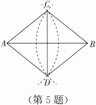 5. 如图,已知线段 $ AB $,分别以 $ A,B $ 为圆心,大于 $ \frac{1}{2}AB $ 的同样长为半径作弧,两弧交于点 $ C,D $,连接 $ AC,AD,BC,BD,CD $,则下列结论不一定成立的是(