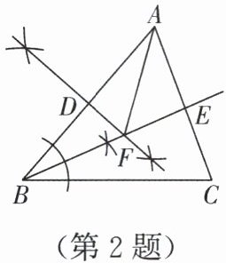 2. (2022,长春,7)如图,在$ \triangle ABC $ 中,根据尺规作图的痕迹,下列说法不一定正确的是(