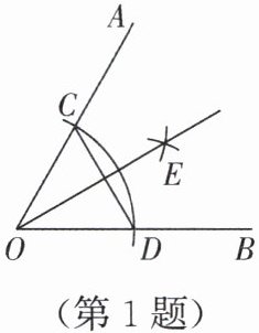 1. 如图,以 $ \angle AOB $ 的顶点 $ O $ 为圆心,适当长为半径作弧,交 $ OA $ 于点 $ C $,交 $ OB $ 于点 $ D $,再分别以点 $ C,D $ 为圆心,大于 $ \frac{1}{2}CD $ 的长为半径作弧,两弧在 $ \angle AOB $ 的内部交于点 $ E $,过点 $ E $ 作射线 $ OE $,连接 $ CD $,则下列说法中错误的是(