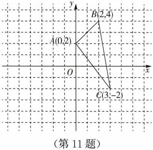 1. 由图可知,$\triangle ABC$各顶点坐标为:$A(0,2)$,$B(2,4)$,$C(3,-2)$。