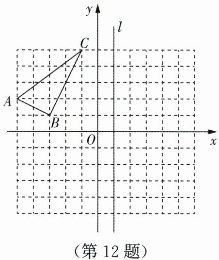 12. 如图,在正方形网格中建立平面直角坐标系,$\triangle ABC的顶点坐标分别为A(-5,2)$,$B(-3,1)$,$C(-1,5)$.