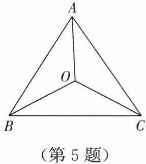 5. 如图,O 为$\triangle ABC$内任意一点,连接 OA,OB,OC. 请判断$\frac{1}{2}(AB + BC + AC)和OA + OB+OC$的大小关系,并说明理由.