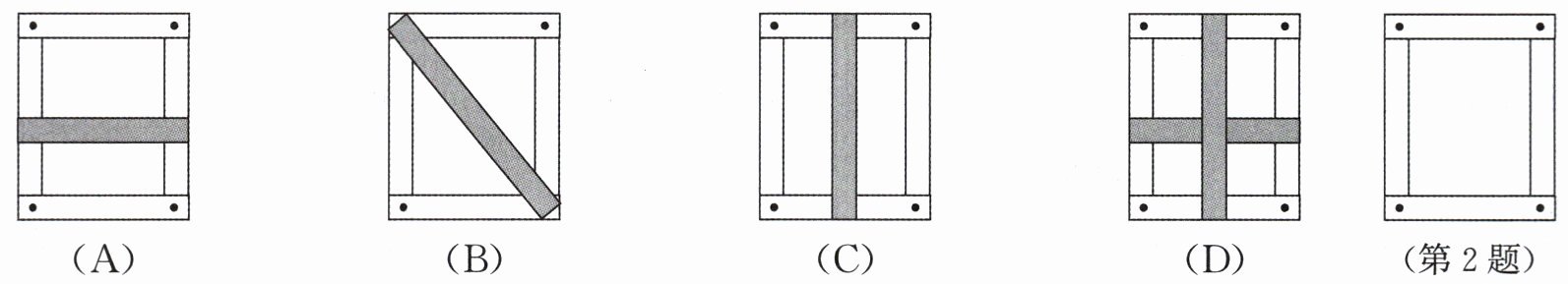 2. 如图,木工师傅做了一个长方形框架,但发现它很容易变形. 若要加固此长方形框架,需要钉一根木条,则他应该选择的加固方案是(