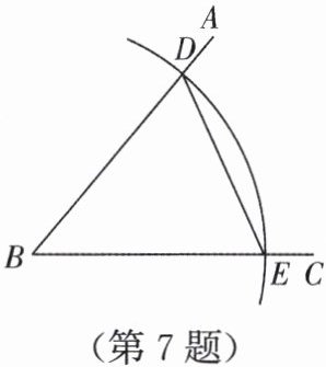 7. (2023, 长沙,13)如图,已知 $\angle ABC = 50^{\circ}$,点 $D$ 在射线 $BA$ 上,以点 $B$ 为圆心,$BD$ 长为半径作弧,交射线 $BC$ 于点 $E$,连接 $DE$,则 $\angle BDE$ 的度数是