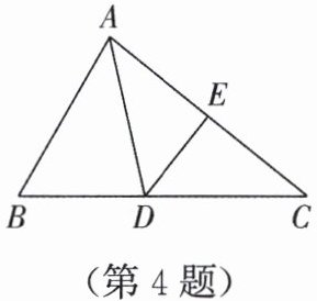 4. 如图,$DE$ 是 $AC$ 的垂直平分线,$AD$ 平分 $\angle BAC$。若 $\angle B = 60^{\circ}$,则 $\angle CDE$ 的度数为(