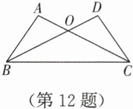 12. 如图,$AB = DC$,$\angle A= \angle D$,$AC$ 与 $DB$ 相交于点 $O$。求证 $OB = OC$。