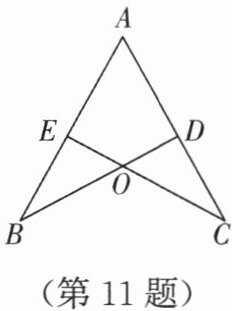 11. 如图,$OB = OC$,$\angle B= \angle C$。求证 $AB = AC$。