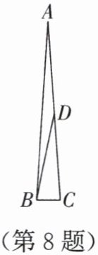 8. 如图,在等腰三角形 $ABC$ 中,$AB = AC$,一腰上的中线 $BD$ 将这个等腰三角形的周长分成 $15$ 和 $6$ 两部分,则这个三角形的腰长及底边长分别为