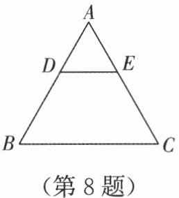 8. 如图,$ \triangle ABC $ 是等边三角形,$ DE // BC $,分别交 $ AB,AC $ 于点 $ D,E $. 若 $ AB = 10 $,$ BD = 6 $,则 $ \triangle ADE $ 的周长为