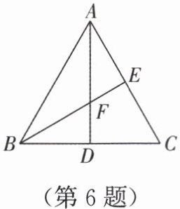 6. 如图,在等边三角形 $ ABC $ 中,$ AD,BE $ 是中线,且 $ AD $ 与 $ BE $ 相交于点 $ F $,则 $ \angle AFB $ 的度数为