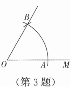 3. 如图,以点 $ O $ 为圆心,任意长为半径作弧,与射线 $ OM $ 交于点 $ A $,再以点 $ A $ 为圆心,$ AO $ 的长为半径作弧,与前弧交于点 $ B $,作出射线 $ OB $,则 $ \angle AOB $ 等于(