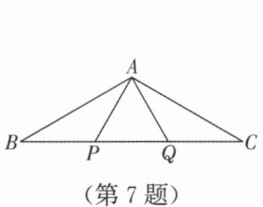 7. 如图,$ P,Q $ 是 $ \triangle ABC $ 的边 $ BC $ 上的两点,且 $ BP = PQ = QC = AP = AQ $,则 $ \angle BAC $ 的度数为