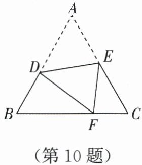 10. 如图,在等边三角形 $ ABC $ 中,点 $ D $ 在边 $ AB $ 上,点 $ E $ 在边 $ AC $ 上,将 $ \triangle ADE $ 折叠,使点 $ A $ 落在 $ BC $ 边上的点 $ F $ 处,则 $ \angle BDF + \angle CEF $ 的大小等于 ______.