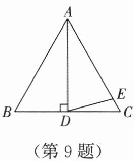 9. 如图,$ \triangle ABC $ 是等边三角形,$ AD \perp BC $ 于点 $ D $,点 $ E $ 在 $ AC $ 上,且 $ AE = AD $,则 $ \angle DEC $ 的度数为______.