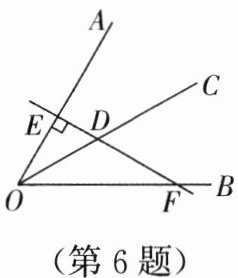 6. 如图,已知 $ \angle AOB = 60^{\circ} $,$ OC $ 是 $ \angle AOB $ 的平分线,$ D $ 为 $ OC $ 上一点,过点 $ D $ 作直线 $ DE \perp OA $,垂足为 $ E $,且直线 $ DE $ 交 $ OB $ 于点 $ F $. 若 $ DE = 3 $,则 $ DF = $