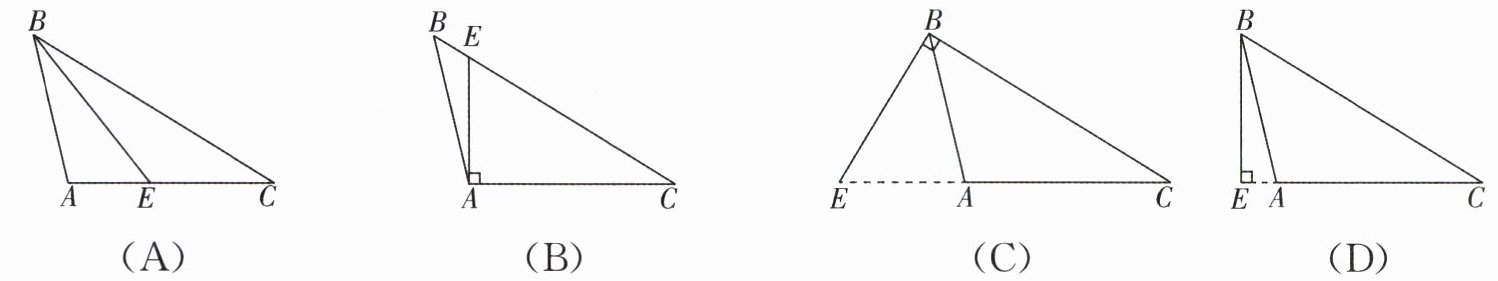 4. 如图,$ BD $,$ BE $,$ BF $ 分别是 $ \triangle ABC $ 的高、角平分线、中线,则下列选项错误的是(