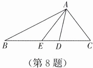 8. 如图,$ AD $ 是 $ \triangle ABC $ 的角平分线,$ AE $ 是 $ \triangle ABD $ 的角平分线. 若 $ \angle BAC = 100^{\circ} $,则 $ \angle BAE $ 的度数是