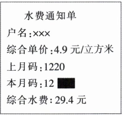 1. 如图是李奶奶家刚收到的水费通知单,通知单不小心被污渍污染了。