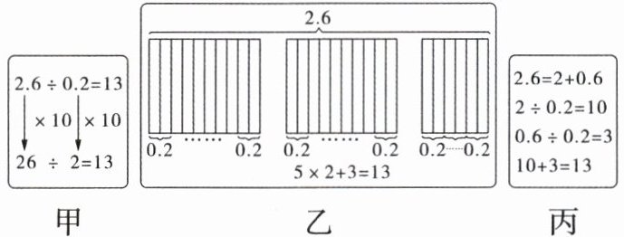 1. 下面是三名同学计算$2.6÷0.2$的方法,正确的有(