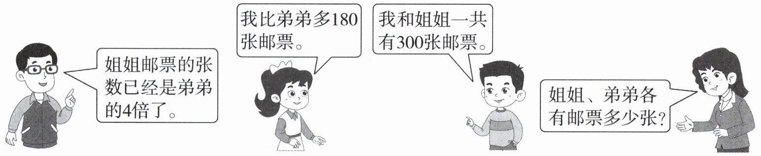 )。A.解:设姐姐有 $x$ 张邮票。 $4x + x = 300$