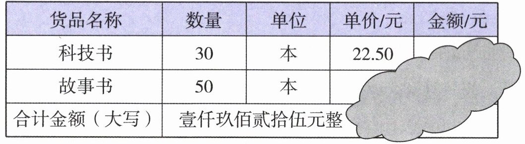 1. 学校为五年级同学购进了一批图书,王老师为此绘制了一张统计表,但是被一名同学不小心洒上了墨水,有些数据看不清了,请你根据表中信息计算出每本故事书多少元。