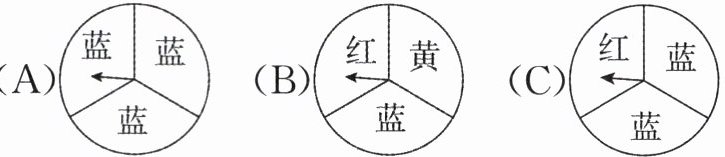 1. 转动下面三个转盘,指针停在蓝色区域的可能性最小的是(