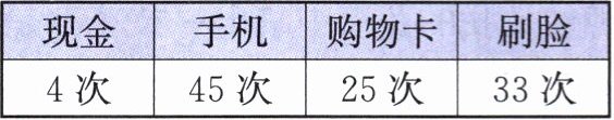 手机;从表中数据可以看出,手机支付次数最多,所以下一位顾客选择用手机支付的可能性最大