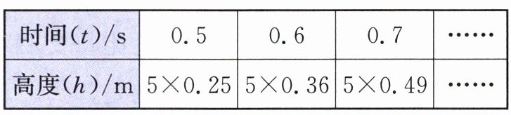 3. 果子成熟后,从树上落到地面,它落下的高度($h$)与经过的时间($t$)有如下关系。