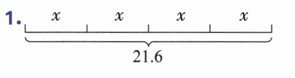 $0.19x = 3.8$ $x ÷ 6 = 12$