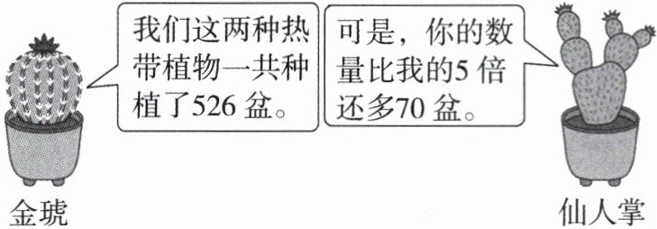 解:设仙人掌种植了x盆。x+5x+70=526,x=76,金琥:526-76=450(盆)