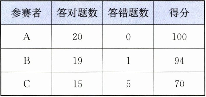 )道题.|参赛者|答对题数|答错题数|得分|