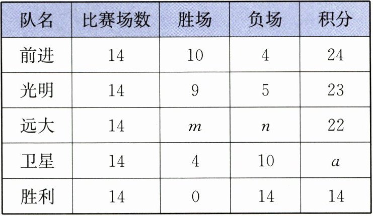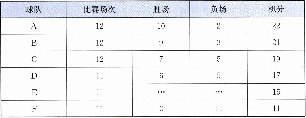 5. (2024,西青区期末)下表为某篮球比赛部分球队的积分榜(篮球比赛没有平局).