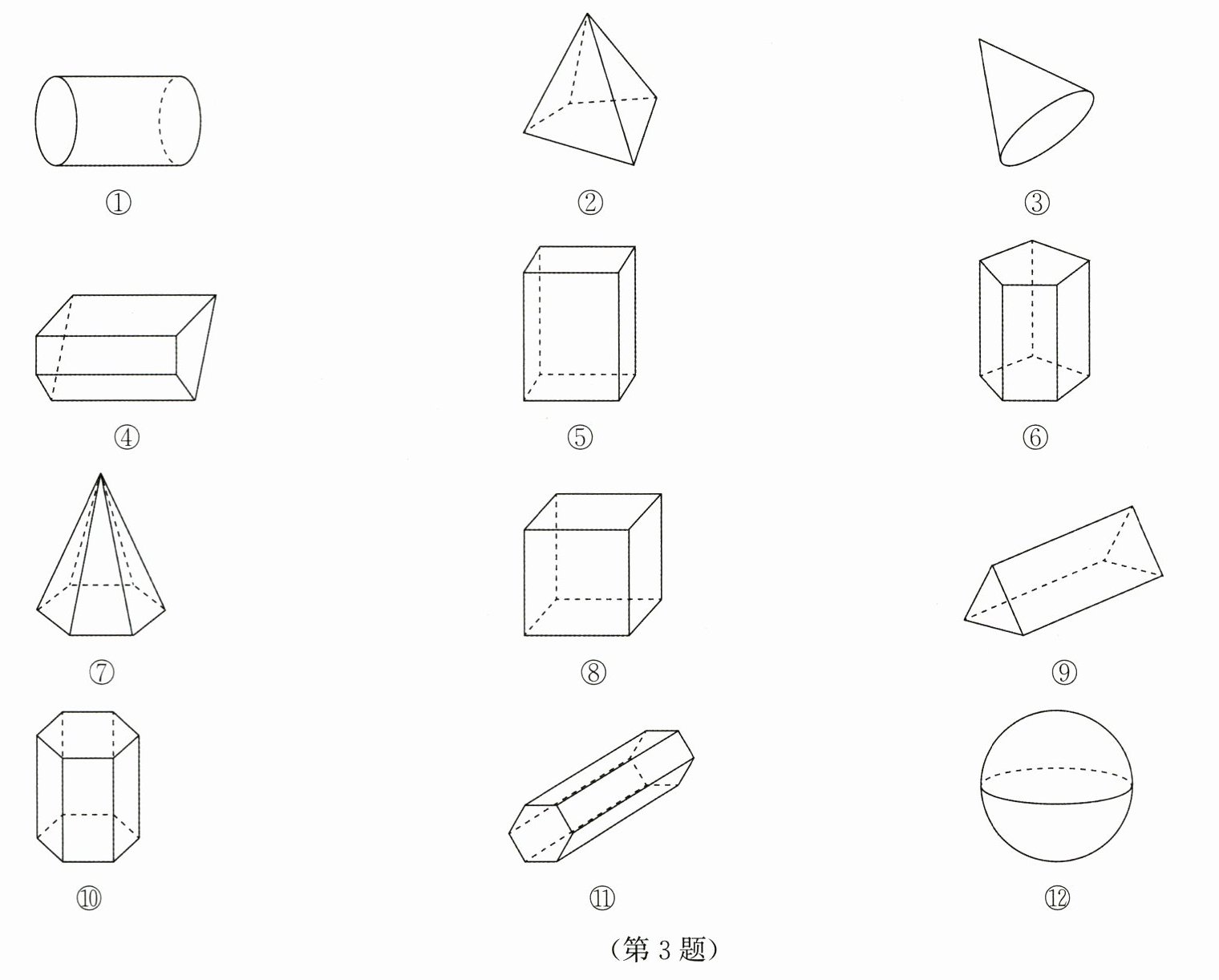 3. 下列几何体中,属于柱体的有 $\underline{
