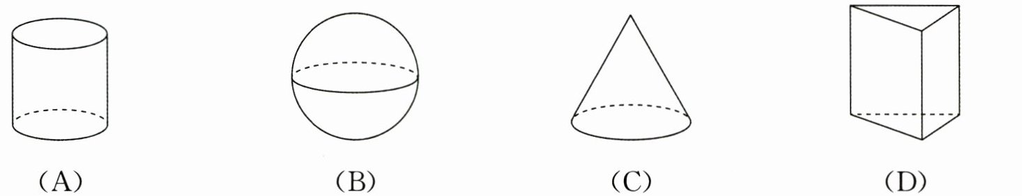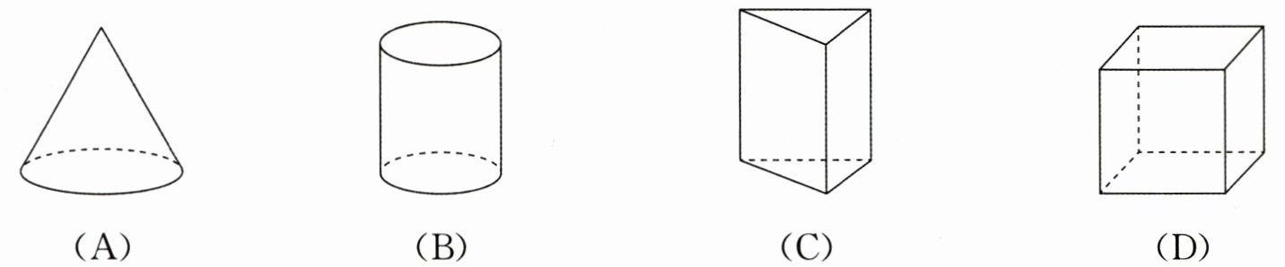 2. 如图,分别从前面、左面、上面观察这些立体图形,得到的平面图形的形状相同的是(