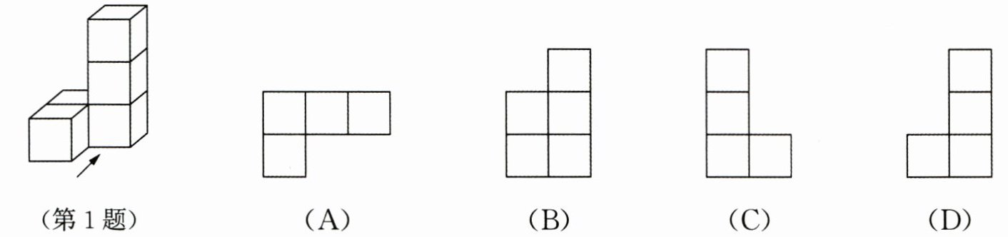 1. (2024,西青区期末)如图是一个由 5 个相同的正方体组成的立体图形,则从正面看到的平面图形是(