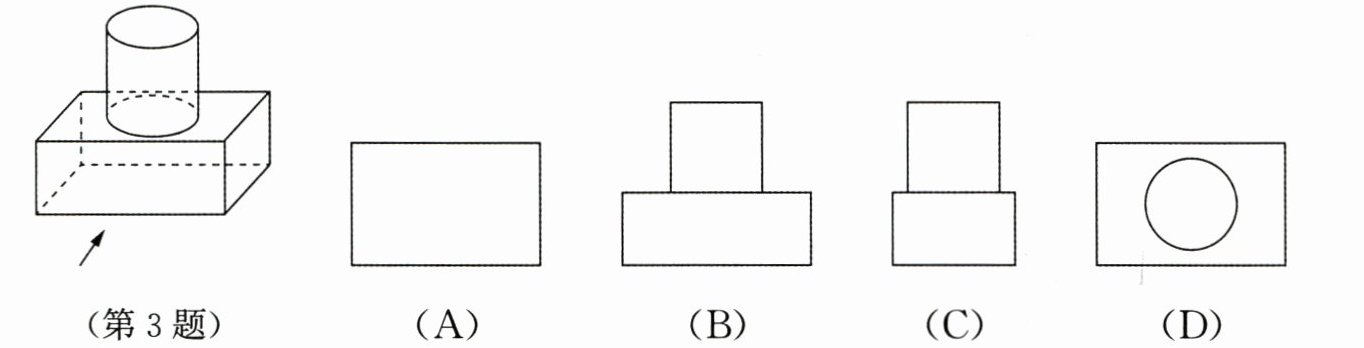3. 如图是由一个长方体和一个圆柱组成的几何体,从上面观察它,得到的平面图形是(