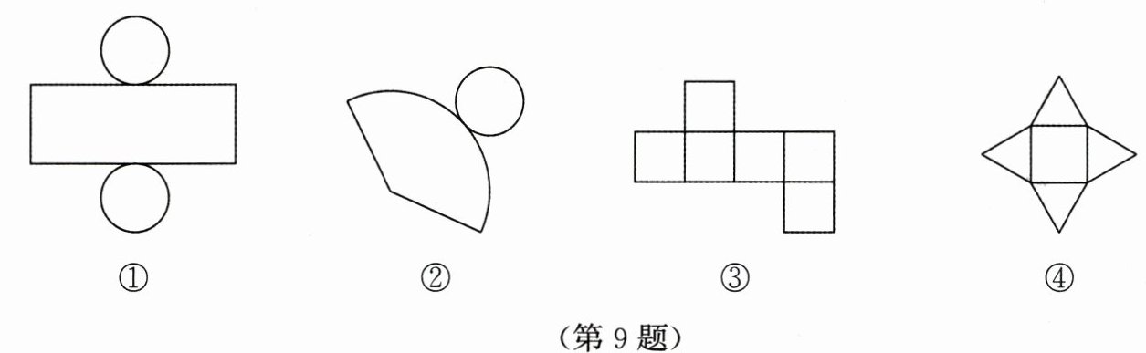 9. 如图,①~④是四个立体图形的展开图,它们能折叠成的立体图形依次是