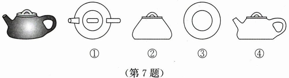 7. 从不同方向看一只茶壶,在下面给出的标有①②③④的图形中,从上面看得到的图形为