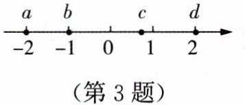 3. 有理数 $a,b,c,d$ 在数轴上对应点的位置如图所示, 这四个有理数中绝对值最小的是(
