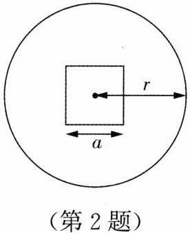 2. 我国古代的铜钱外圆内方的构造彰显了数学之美,设铜钱外部的圆半径为$r$,内部正方形孔边长为$a$,下列代数式能表示铜钱面积的是(