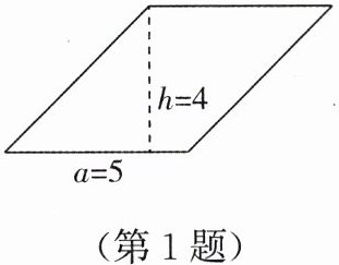 1. 如图,四边形是平行四边形,它的一条边 $ a $ 的长为 $ 5 $,对应的高 $ h $ 为 $ 4 $,则这个平行四边形的面积是(
